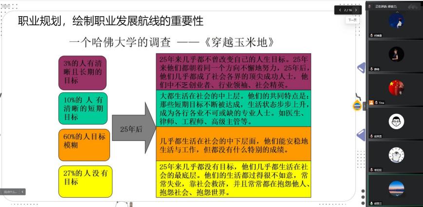 最后,在線的專兼職老師特別針對本模塊的教學內容展開頭腦風暴,大家集思廣益,通過積極的研討和交流,就“如何更有效的開展職業(yè)世界探索的課堂實踐活動”等內容提出了很多建設性的教學建議和方法。李想老師做了總結發(fā)言。