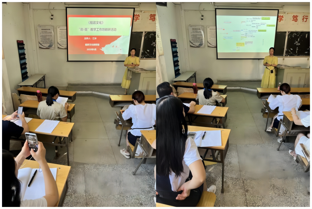 9月22日,馬克思主義學(xué)院船政文化教研室全體專兼職教師在汽車系第一階梯開展了“優(yōu)·美”教學(xué)工作坊教研活動(dòng)。本次教研的內(nèi)容是《船政文化》課程第三講,由江冰老師擔(dān)任主講。
