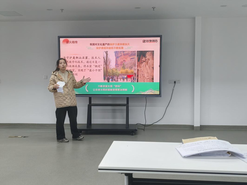 何維康老師和余夢莉老師分別對“文化遺產(chǎn)的傳承和保護”“在創(chuàng)造性轉(zhuǎn)化和創(chuàng)新性發(fā)展中賡續(xù)中華文脈”進行片段展示,引導(dǎo)學(xué)生從身邊文化現(xiàn)象入手,深入思考文化強國的意義與路徑。