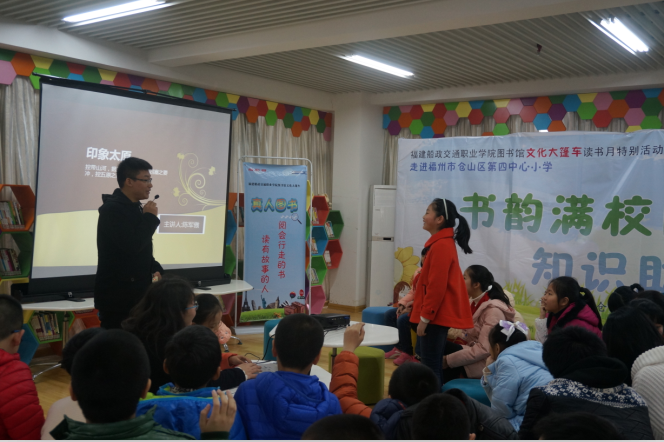 近日,我館在世界讀書日即將到來之際,舉行福建船政交通職業(yè)學(xué)院圖書館文化大篷車 “ 書韻滿校園 知識助遠(yuǎn)航 ” 第六屆讀書月特別活動 ——走進(jìn)福州市倉山區(qū)第四中心小學(xué)系列活動。 在倉山區(qū)第四中心小學(xué)圖書館舉行以美食和旅行為主題的“閱行 悅分享”圖書館真人圖書閱讀。
