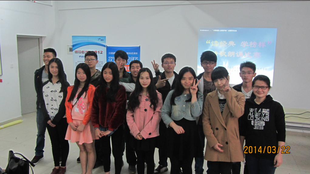 3月22日,圖書館“書香校園從閱讀開始”第四屆讀書月系列活動“讀經(jīng)典學(xué)榜樣”詩歌朗誦比賽在圖書館9樓活動室舉行。全院近30名選手報名參加了比賽。
