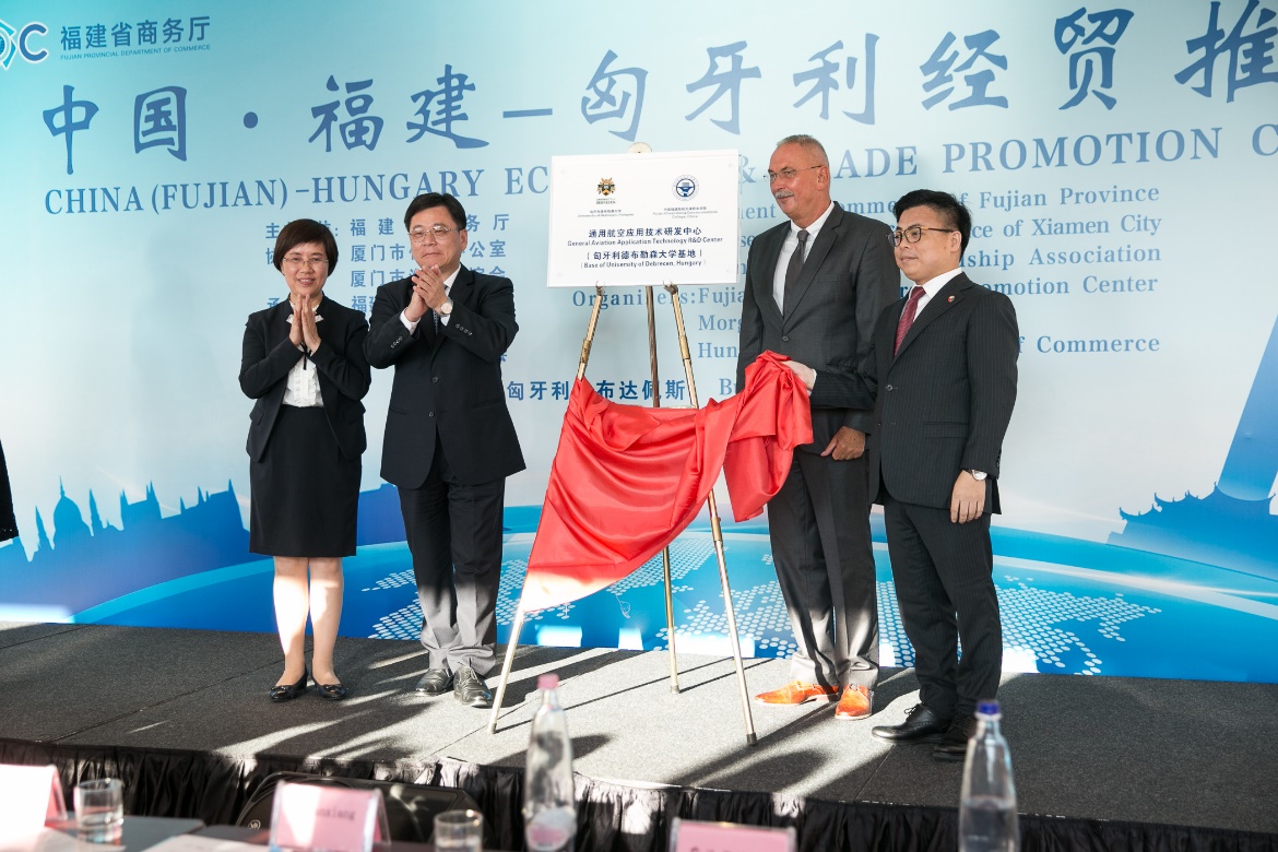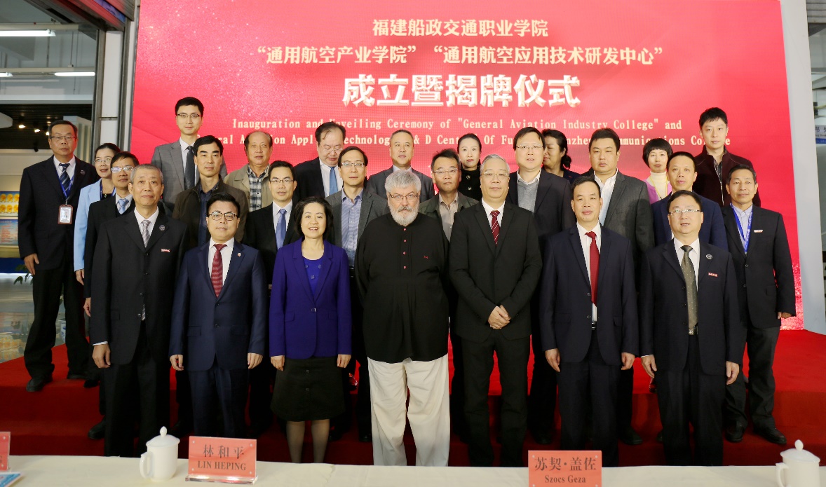 由福建船政交通職業(yè)學(xué)院、匈牙利德布勒森大學(xué)和摩根斯達(dá)集團(tuán)共同推動(dòng)成立 “通用航空產(chǎn)業(yè)學(xué)院”,于2019年12月2日揭牌成立。匈牙利總理首席顧問蘇契·蓋佐,福建省委教育工委書記、省教育廳廳長林和平,福建省委統(tǒng)戰(zhàn)部部務(wù)會(huì)議成員、福建省中華職業(yè)教育社黨組書記王秋梅,省委軍民融合發(fā)展委員會(huì)辦公室副主任黃建清,匈牙利摩根斯達(dá)集團(tuán)董事長郭國雄等領(lǐng)導(dǎo)出席了揭牌儀式,參加儀式的還有民航福建空管局領(lǐng)導(dǎo),福建省工信廳、人社廳、交通運(yùn)輸廳、商務(wù)廳、省委軍民融合辦、教育廳、福建省中華職業(yè)教育社、福建省通用航空行業(yè)協(xié)會(huì)等相關(guān)處室的領(lǐng)導(dǎo)。