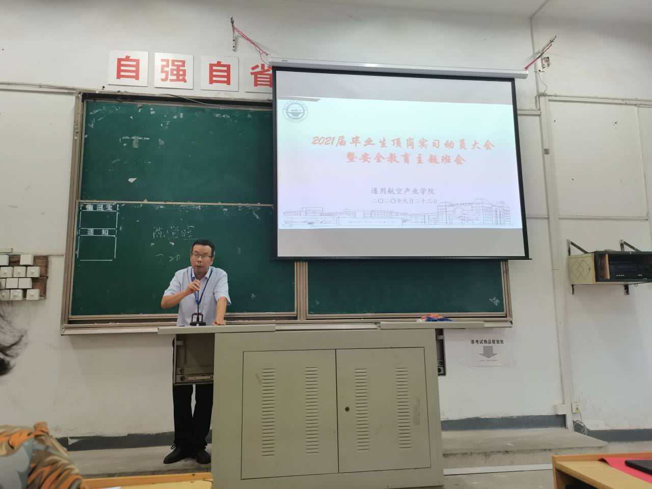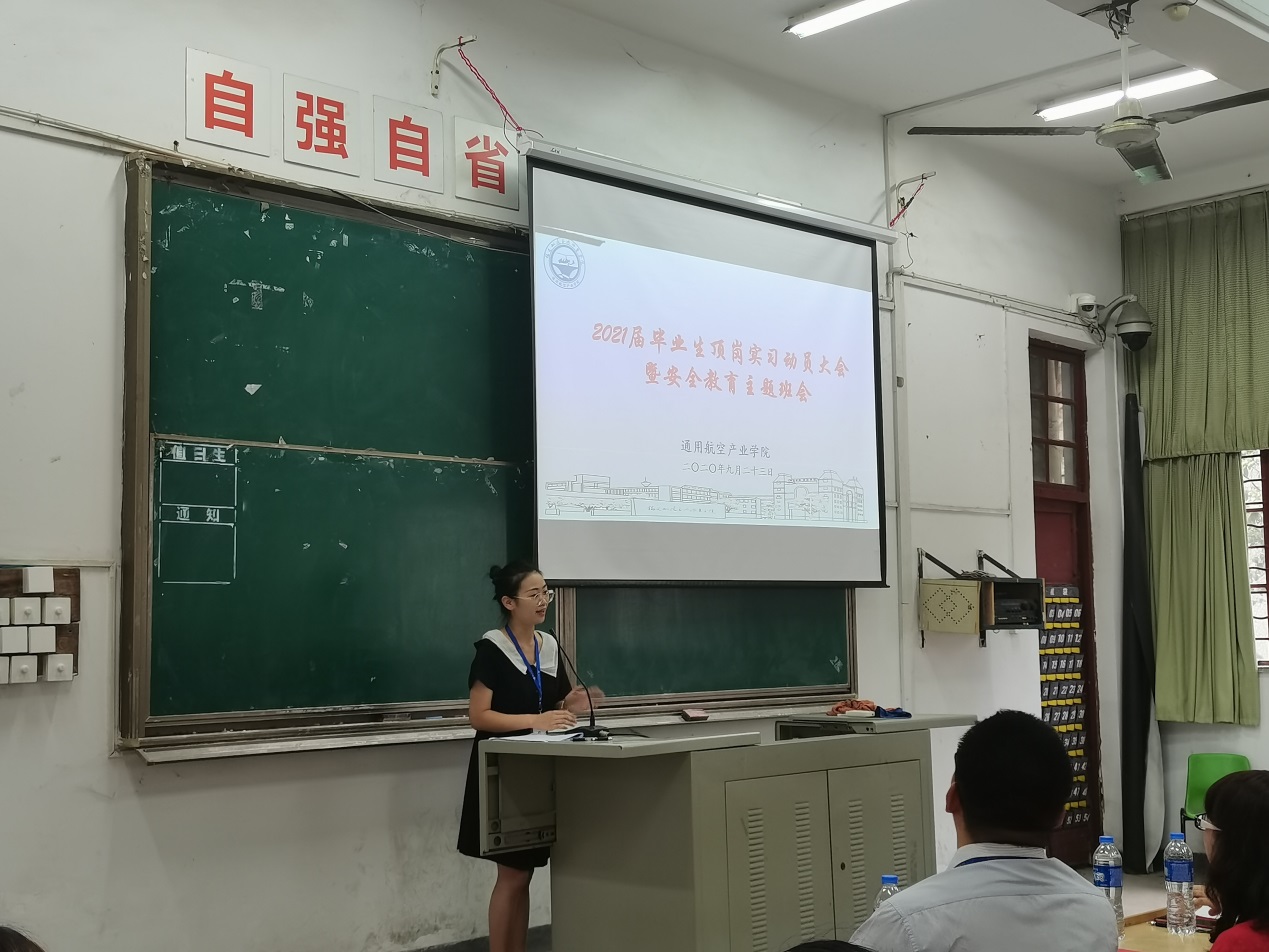 為加強(qiáng)畢業(yè)生對(duì)頂崗實(shí)習(xí)的認(rèn)識(shí)和了解,保障學(xué)生在實(shí)習(xí)期間的安全。2020年9月23日下午,通用航空產(chǎn)業(yè)學(xué)院在土一階召開2021屆畢業(yè)生頂崗實(shí)習(xí)暨安全教育大會(huì)。會(huì)議由畢業(yè)班輔導(dǎo)員莊智群老師主持,學(xué)院院長(zhǎng)陳常暉、學(xué)院黨總支副書記蘇漢美、學(xué)院副院長(zhǎng)王顯彬、空中乘務(wù)教研室主任江敏老師及輔導(dǎo)員范聲斌參加了會(huì)議。