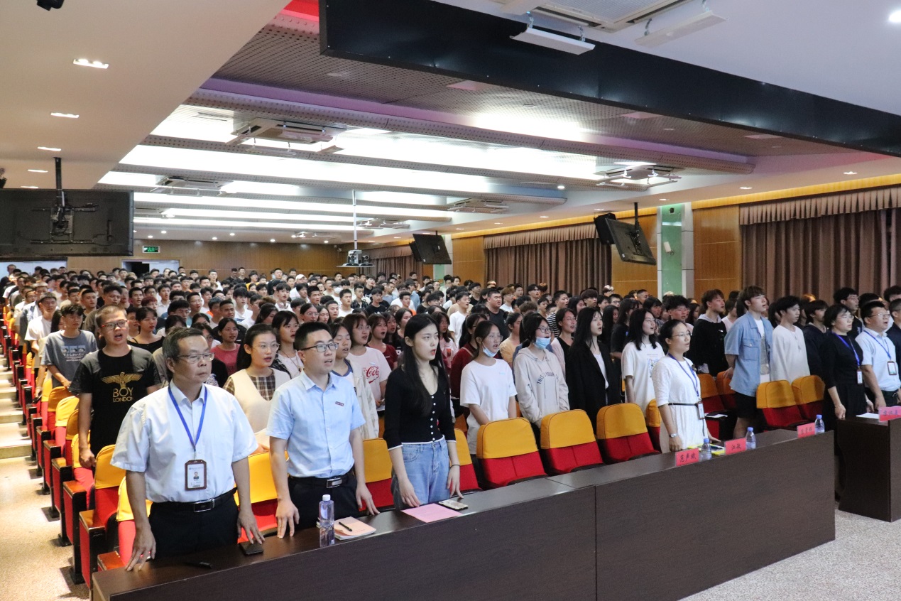全體師生起立唱國(guó)歌,開學(xué)典禮在莊嚴(yán)肅穆的國(guó)歌聲中正式拉開帷幕。