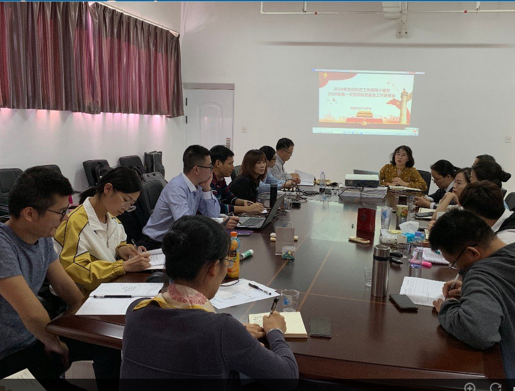 2020年9月30日下午,我院在圖書館會議室召開2020年意識形態(tài)領(lǐng)導(dǎo)小組暨2020年第一次意識形態(tài)安全工作聯(lián)席會。分析研判學(xué)院開學(xué)2個月來,當(dāng)前意識形態(tài)工作情況以及對2020年意識形態(tài)工作進行部署。學(xué)院院長、黨總支副書記、支部書記、各部門負(fù)責(zé)人參加會議。會議由蘇漢美副書記主持。
