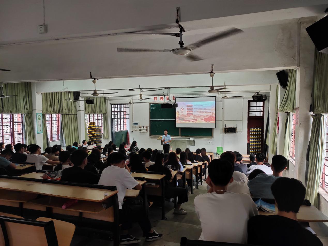 輔導(dǎo)員范聲斌主要從“黨團(tuán)關(guān)系”、“十九大關(guān)鍵詞”、“學(xué)院總支介紹”、 “入黨程序”四個方面展開。首先重溫了入黨誓詞,講述了中國共產(chǎn)黨人的初心和使命以及中華民族偉大復(fù)興的中國夢。接著,簡要介紹了學(xué)院總支構(gòu)架,發(fā)展黨員流程等,讓同學(xué)們有了初步的了解。隨后,分享了習(xí)近平總書記在北大考察時的講話,以“追夢需要激情和理想,圓夢需要奮斗和奉獻(xiàn)”與全體2020級新生共勉,著重強(qiáng)調(diào)了“奉獻(xiàn)”對于圓夢的不可或缺性。輔導(dǎo)員莊智群老師從“分團(tuán)委介紹”、“入團(tuán)程序”兩個方面展開,首先重溫了入團(tuán)誓詞,講述分團(tuán)委的部門職責(zé)、第二課堂成績構(gòu)成進(jìn)行了講解,鼓勵同學(xué)們?nèi)プ穳?,以青春之我,在奮斗中書寫青春華章。
