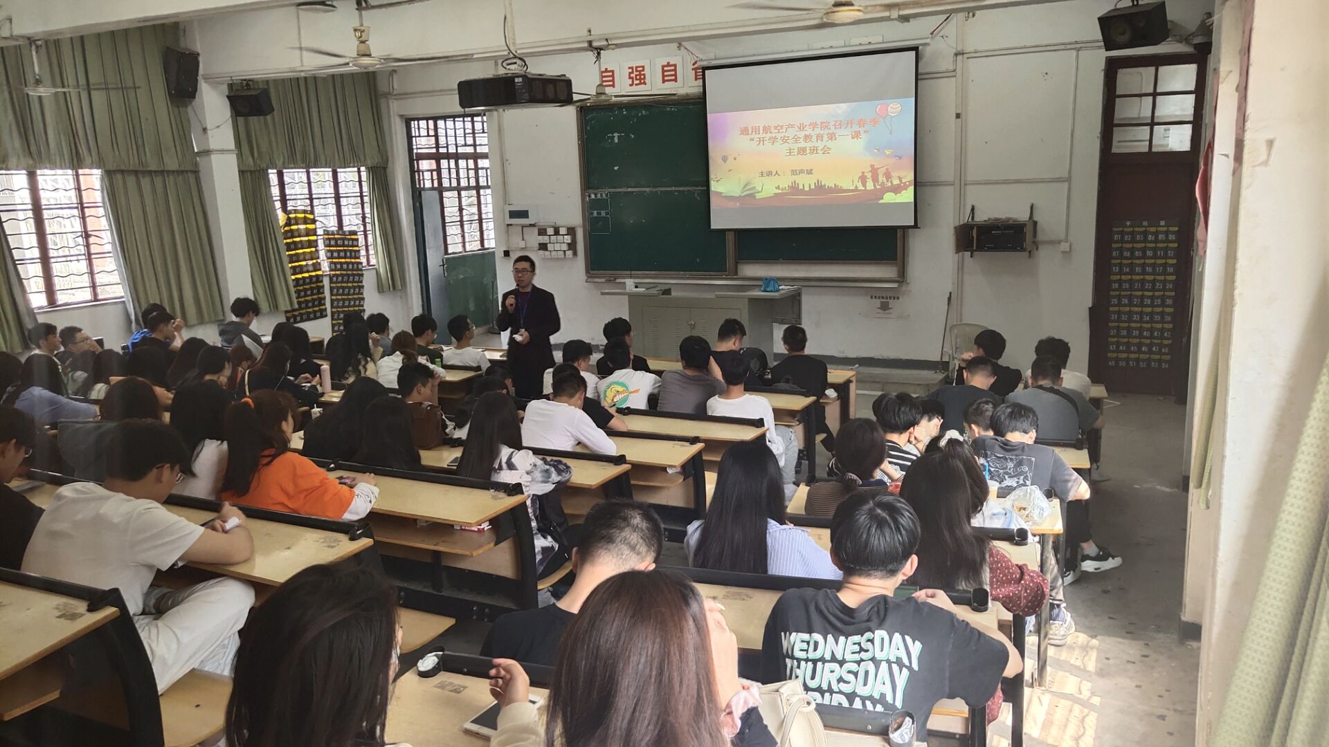 為進(jìn)一步加強(qiáng)對(duì)航空學(xué)子安全防范教育,提高同學(xué)們的疫情防疫意識(shí)、安全防范意識(shí)、防詐騙意識(shí)和自覺(jué)遵紀(jì)守法的意識(shí)。2021年3月17日中午,在北區(qū)八號(hào)樓階梯一,階梯四教室,通用航空產(chǎn)業(yè)學(xué)院組織2019級(jí)、2020級(jí)在校學(xué)生召開(kāi)“安全教育第一課”主題班會(huì)。我院黨總支副書(shū)記蘇漢美、輔導(dǎo)員范聲斌、莊智群以及各班主任進(jìn)班宣講。
