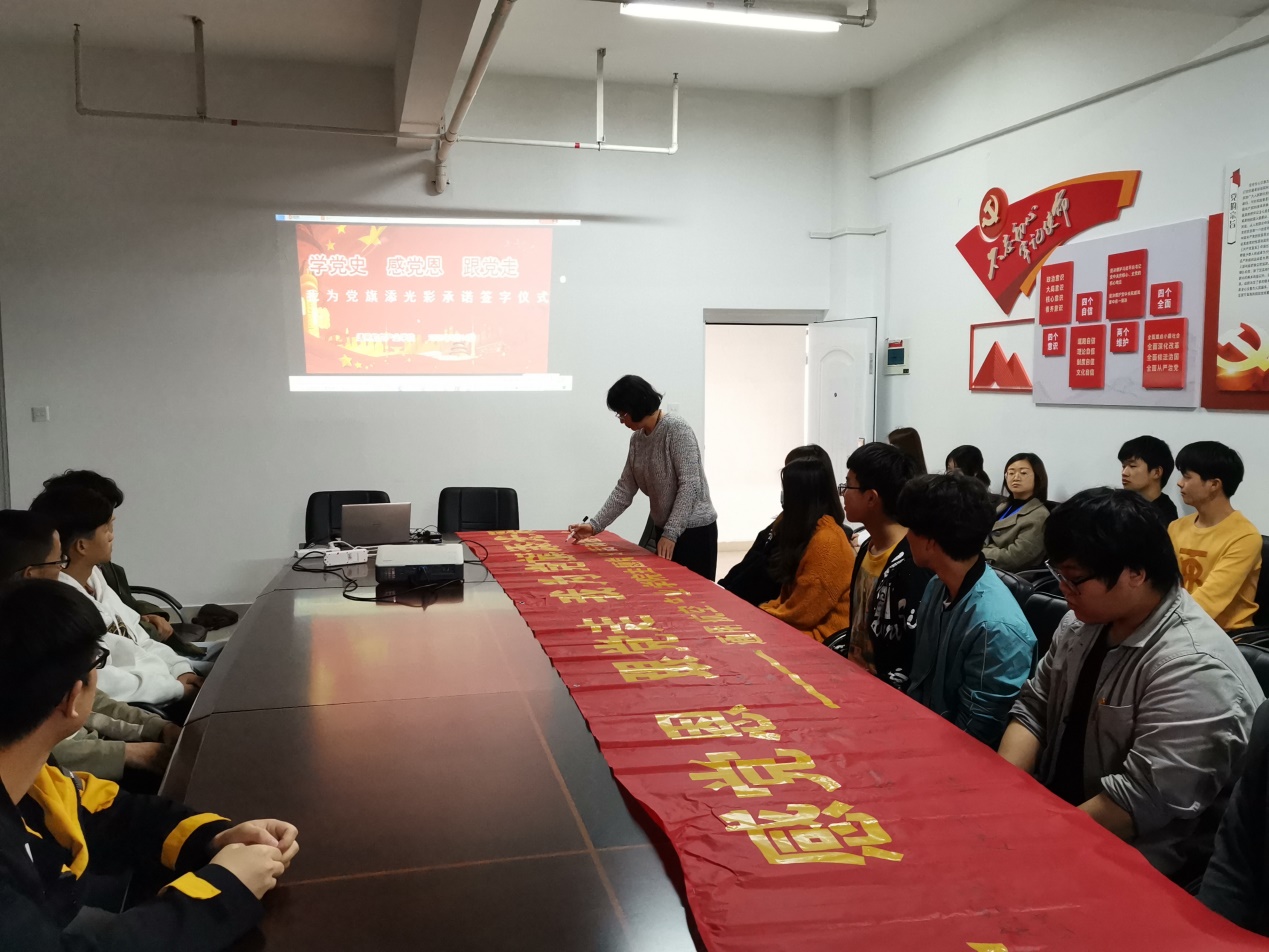 所有黨員和學(xué)生代表依次在“學(xué)黨史、感恩黨、跟黨走,我為黨旗添光彩”的橫幅上一一簽名,許下承諾,用實(shí)際行動(dòng)踐行初心使命。