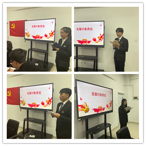 二、發(fā)展對象王佳歡、葉婧茹、陳偉翔、李晗橦同學(xué)匯報(bào)有關(guān)情況;