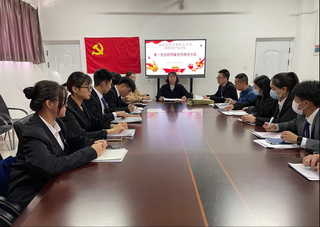 2021年12月13日,通用航空產(chǎn)業(yè)學(xué)院第一黨支部在在圖書館12樓會議室召開“接收預(yù)備黨員大會”,大會主要議題是討論關(guān)于吸收王佳歡、葉婧茹、陳偉翔、李晗橦4位同學(xué)為預(yù)備黨員的問題,會議由支部書記陸李欽主持。