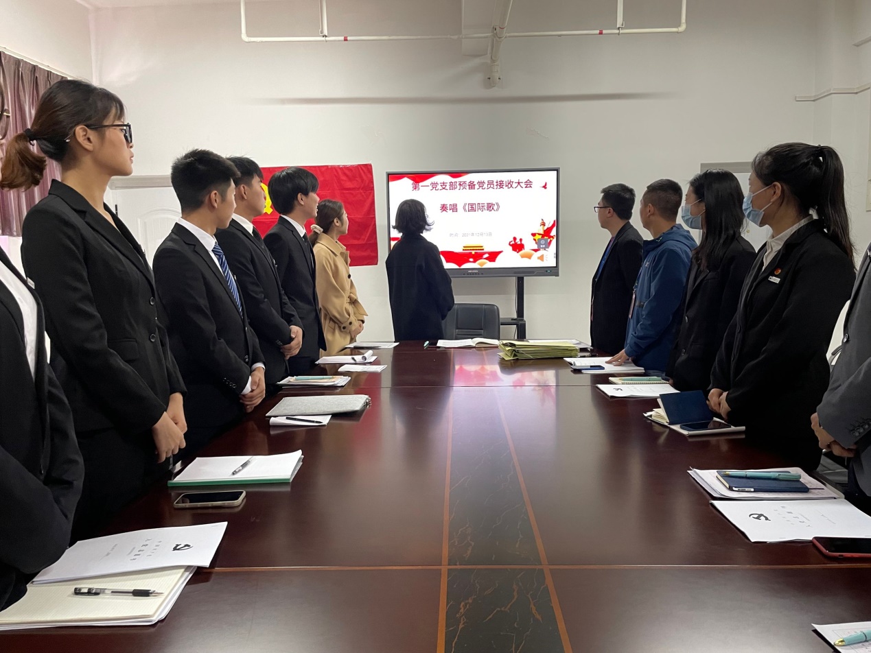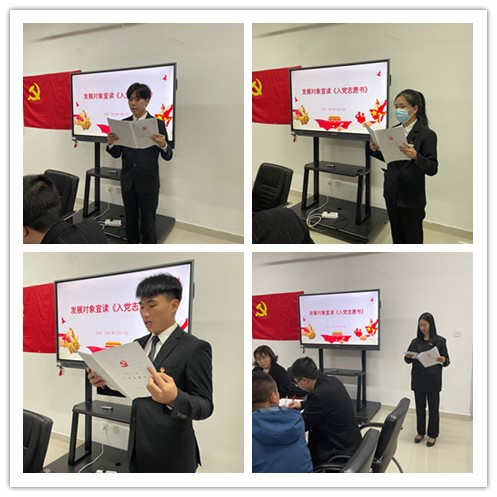 會議伊始,奏唱國際歌,在鏗鏘有力的歌聲中,大會正式拉開序幕。首先由組織員范聲斌同志宣讀本次會議的發(fā)展對象名單,并向與會同志介紹會議流程。