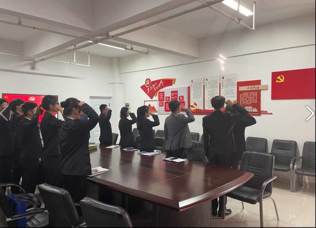 最后,由黨總支副書記蘇漢美同志領(lǐng)讀誓詞宣誓,全體同志面向鮮艷的黨旗,重溫入黨誓詞,會議在莊重而熱烈的氛圍中圓滿結(jié)束。
