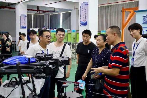 在航空港實訓大廳,介紹了模擬機艙的各項功能,演示了客艙服務(wù)流程和應(yīng)急設(shè)備操作,展現(xiàn)了高度仿真的職業(yè)教學環(huán)境與注重實操能力培養(yǎng)的教學理念。在無人機實訓室,現(xiàn)場演示并解析了無人機的結(jié)構(gòu)與應(yīng)用技術(shù),凸顯了學院在航空領(lǐng)域扎實的教學基礎(chǔ)和先進的實景化教學條件。在維修實訓室,參觀了空客A320實訓真機,講解了現(xiàn)代民用飛機的系統(tǒng)結(jié)構(gòu)、飛行原理及航空技術(shù)前沿發(fā)展,介紹了圍繞真機開展的實訓課程設(shè)計情況。