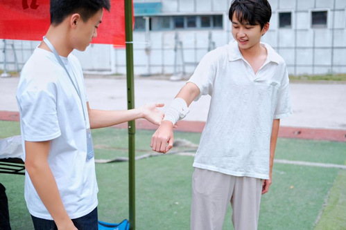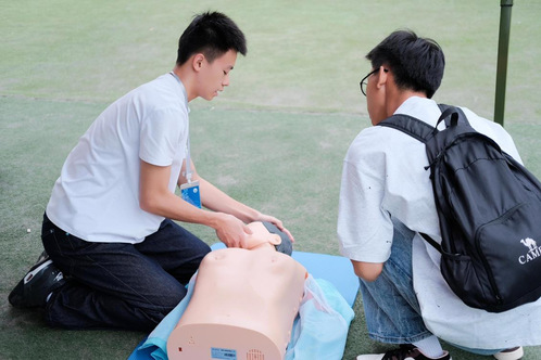活動(dòng)通過趣味問答、現(xiàn)場演示等豐富形式,吸引了大量同學(xué)參與。抽象的急救知識(shí)在互動(dòng)題目中變得直觀可感,激發(fā)了大家的求知欲。隨后的實(shí)操環(huán)節(jié)中,在志愿者“手把手”的教導(dǎo)下,同學(xué)們紛紛拿起三角巾和繃帶,為同伴模擬包扎頭部與四肢,認(rèn)真練習(xí)止血與固定技巧。心肺復(fù)蘇(CPR)教學(xué)更是將氣氛推向高潮,志愿者不僅詳盡演示,更引導(dǎo)同學(xué)們逐一在模擬人上實(shí)踐,確保要領(lǐng)深入人心。整個(gè)現(xiàn)場互動(dòng)頻繁,討論熱烈,洋溢著積極向上的學(xué)習(xí)熱情。