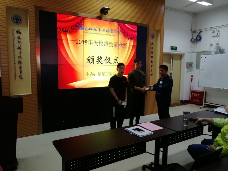 本次比賽共進行云計算&&信息安全—LINUX系統(tǒng)管理技術(shù)、VR虛擬現(xiàn)實建模技術(shù)、平面設(shè)計技術(shù)、Python程序設(shè)計與應(yīng)用、移動互聯(lián)應(yīng)用開發(fā)、軟件測試等6個賽項的角逐,參與學(xué)生達到130人,最終有10位同學(xué)獲得了一等獎。10月31日下午,信息工程系孫基書記,黃金鳳主任,以及本次比賽獎品贊助商優(yōu)創(chuàng)課堂的張欽華總經(jīng)理,系部各賽項的指導(dǎo)老師和同學(xué)參加了頒獎儀式。