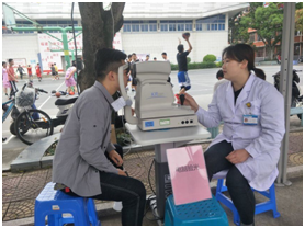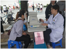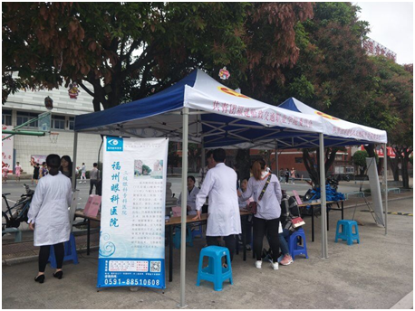 講座結(jié)束后,來自眼科醫(yī)院的醫(yī)生在文化墻為師生提供免費(fèi)眼科體檢和眼部健康知識宣傳活動(dòng),義診檢查的內(nèi)容主要包括視力表測試、專業(yè)檢測機(jī)器,宣講用眼、護(hù)眼、預(yù)防眼病知識,提高師生用眼健康意識。學(xué)校70多名師生參加體檢。義診現(xiàn)場向師生發(fā)放了眼科疾病預(yù)防、眼部保健等宣傳資料手提袋80多份。