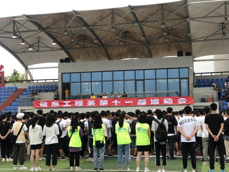 10月14日早上8點,信息工程系第十一屆運動會如期舉行,開幕式由書記,各位輔導員及運動員代表說話。