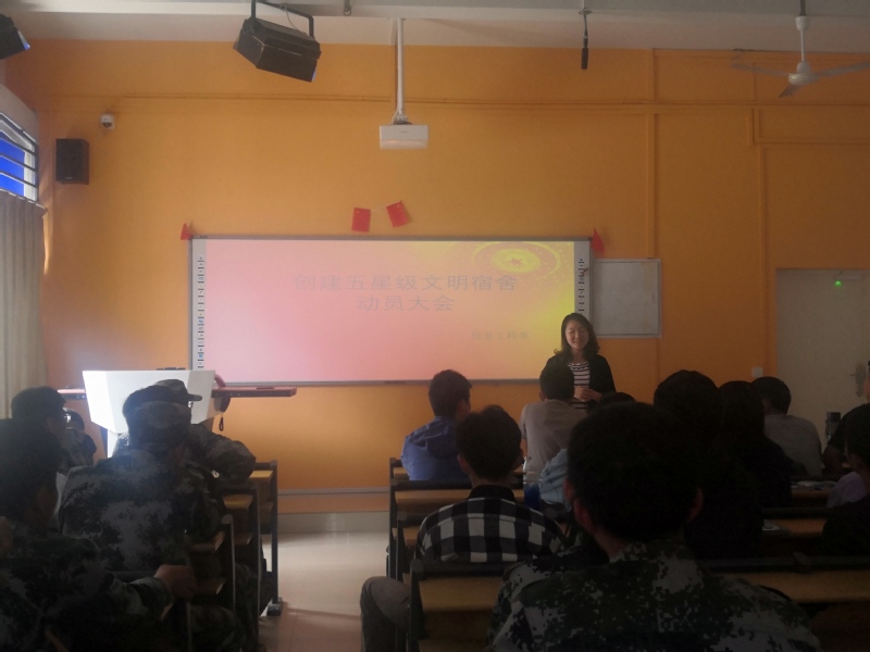 本次動員大會旨在貫徹落實“不忘初心、牢記使命”主題教育總要求,激發(fā)了同學(xué)們對“創(chuàng)建五星級文明宿舍”活動的熱情和信心,為文明宿舍創(chuàng)建活動的良好開展做了很好的精神動員。