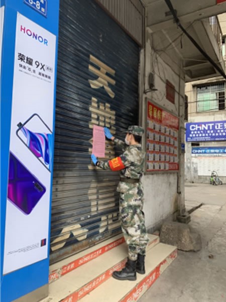 同時(shí),他每天進(jìn)行沿街防疫宣傳“勿聚眾,請(qǐng)戴口罩”,粘貼防疫宣傳單。因?yàn)樵谵r(nóng)村,大家都喜歡出來曬太陽,聚眾聊天,這對(duì)勸導(dǎo)工作帶來了很大挑戰(zhàn),少數(shù)人會(huì)在勸離之后又聚在一起,最終經(jīng)過防疫隊(duì)的不斷調(diào)解,現(xiàn)街上基本沒有聚眾的情況出現(xiàn)。