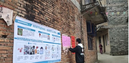 19級(jí)大數(shù)據(jù)1班學(xué)生干部廖義杰勇于擔(dān)當(dāng),主動(dòng)以志愿者身份參與到疫情防控工作中,在村莊張貼宣傳標(biāo)語,為村民發(fā)放宣傳單,宣傳健康小知識(shí)并告知他們特殊時(shí)期不聚集、不宴請(qǐng)、不出門,勸阻正在聚集的村民立即解散并各自歸家。