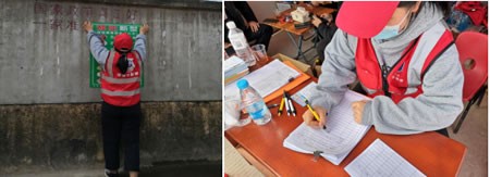 18級(jí)計(jì)算機(jī)應(yīng)用技術(shù)3班的康舒主動(dòng)報(bào)名參加了家鄉(xiāng)的疫情防控工作。她們志愿者采取輪班的形式,一天分成三班,康舒于三點(diǎn)到達(dá)卡點(diǎn)處,與村干部及其他志愿者一起,做好當(dāng)天的準(zhǔn)備工作,如:進(jìn)出人員登記表,張貼宣傳標(biāo)語等。準(zhǔn)備工作完成之后,所有志愿者各司其職,井然有序地開展抗疫情工作。她們的工作主要是對(duì)進(jìn)出人員進(jìn)行體溫測(cè)量、非本村入村直接勸返。遇到冥頑不化的村民,她們耐心地與他們說明當(dāng)下抗疫形勢(shì)的嚴(yán)峻,外出可能帶來的風(fēng)險(xiǎn),為了自己和他人的安全停下腳步。