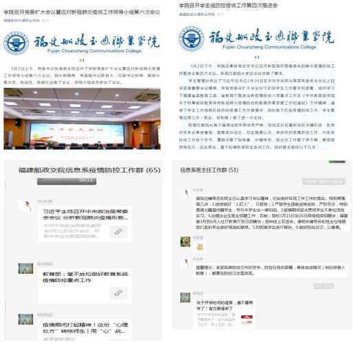 全體黨員教師認(rèn)真學(xué)習(xí)習(xí)近平關(guān)于新冠肺炎疫情防控工作系列重要講話精神、上級(jí)和學(xué)院關(guān)于防控工作相關(guān)文件,主動(dòng)通過(guò)QQ群、微信公眾號(hào)等新媒體平臺(tái)宣傳并學(xué)習(xí)學(xué)校防控工作要求、防疫知識(shí)、防疫進(jìn)展情況;深入開(kāi)展“疫情防控”主題黨日活動(dòng),弘揚(yáng)正能量,不僅做到自己亮身份、樹(shù)形象,將責(zé)任內(nèi)化于心、外化于行,更是注重引導(dǎo)身邊師生群眾仔細(xì)辨別核實(shí)各類信息,做到不信謠不傳謠,以實(shí)際行動(dòng)帶動(dòng)師生共同抗疫。