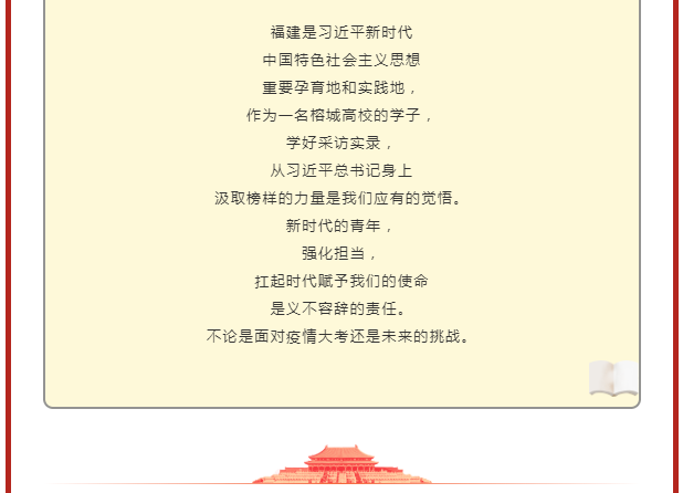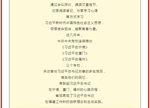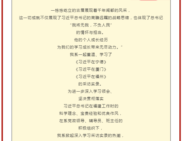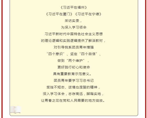 信息工程系||牢記初心使命 勇于擔(dān)當(dāng)作為 ——學(xué)習(xí)《習(xí)近平在寧德》《習(xí)近平在廈門》《習(xí)近平在福州》 采訪實(shí)錄線上團(tuán)日活動(dòng)