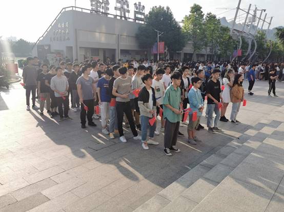 五星紅旗迎風(fēng)飄揚(yáng),嘹亮歌聲飽含熱望。今天,校園披上紅裳,船政師生共聚北區(qū)田徑場,舉行慶祝新中國成立71周年升旗儀式。升旗儀式上,迎著冉冉朝陽,國歌響起,全體在場師生一齊向國旗行注目禮,誠摯而肅穆地目送國旗緩緩上升。我們舞動著手中的小國旗,為祖國母親獻(xiàn)上真摯美好的祝福!