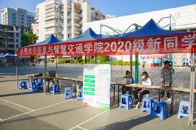 丹桂飄香,初秋有至,仲夏未央。10月10日我校迎來2020級(jí)學(xué)子,他們帶著憧憬與向往踏入校園,疫情雖未結(jié)束,但仍阻擋不了他們堅(jiān)定的步伐。他們帶著夢(mèng)想,翻開了大學(xué)的新篇章。信息與智慧交通學(xué)院黨總支書記許友孝、院長黃金鳳、副書記柳燕妮、副院長陳自力、團(tuán)總支書記沈曉家、白鋒橋老師、陸李欽老師、鄭佳偉老師、張德華老師、陳妍君老師、段吳勇老師赴迎新點(diǎn)慰問新生。