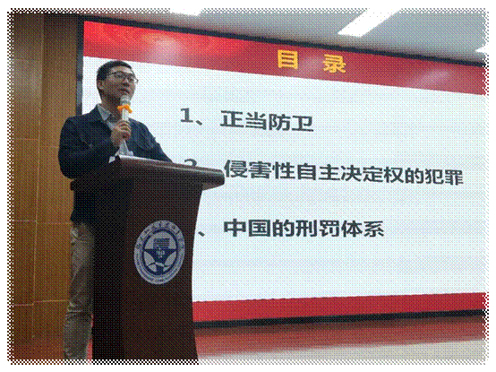 晚上19時(shí),法律案例講座在北區(qū)學(xué)校的1號(hào)辦公樓開講。此次講座由我院彭志允老師主講,主要向我們要介紹如何正當(dāng)防衛(wèi)、防止侵害性自主決定權(quán)的犯罪以及中國(guó)刑罰體系的法律知識(shí)。