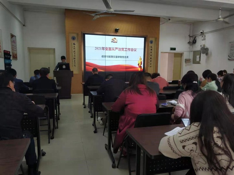 2021年3 月17日,信息與智慧交通學院召開了2021年全面從嚴治黨工作會議,學習了全省教育系統(tǒng)全面從嚴治黨工作視頻會議精神和福建船政交通職業(yè)學院2021年全面從嚴治黨會議精神,總結(jié)回顧了2020年黨建工作,部署2021年度全面從嚴治黨工作。