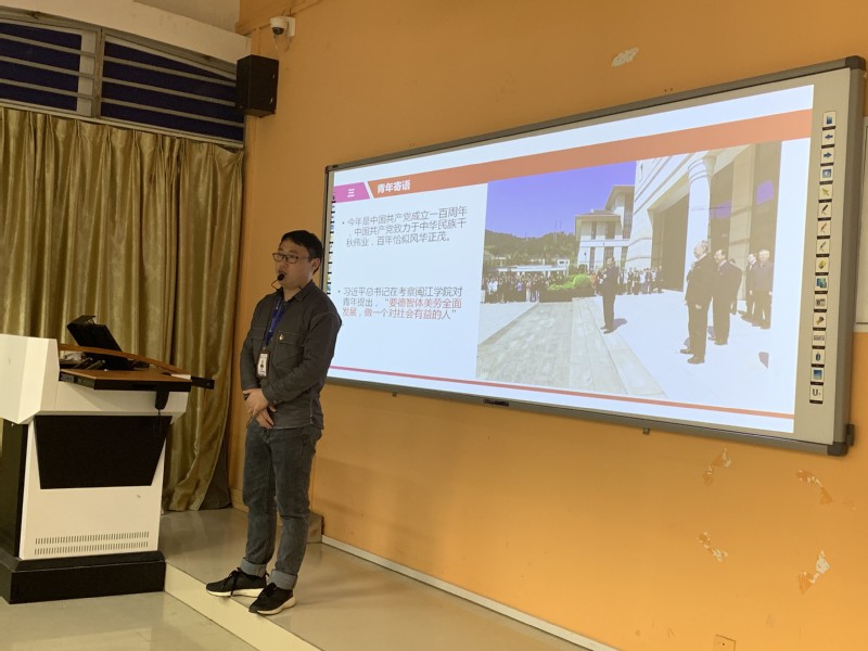 林祥謙,閩侯籍“二七”革命烈士,中國工人階級的杰出代表和中國工人運動的先驅(qū)者。白鋒橋老師從中國工人運動背景、林祥謙事跡介紹、青年寄語等方面講述了林祥謙從事革命活動的軌跡,謳歌了林祥謙大義凜然、慷慨赴死的革命精神。白鋒橋老師最后引用習近平總書記考察福建高校對青年學生的寄語,鼓勵學生要“德智體美勞全面發(fā)展,做一個對社會有益的人”。
