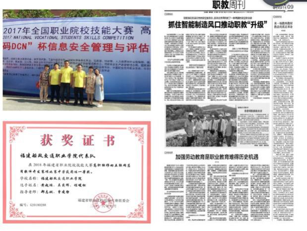 黨支部書記工作室以黨建為引領,引導全體黨員充分發(fā)揮先鋒模范作用,積極推進教育教學改革,切實培養(yǎng)學生“強技為國”的時代擔當。黨員教師組織指導學生參加各類職業(yè)技能競賽,從中不斷總結(jié)教學經(jīng)驗,從而提升教學的實用性和針對性。近年來,獲得全國職業(yè)院校技能大賽獎37項,國家級行業(yè)賽獲獎25項。緊密依托行業(yè)企業(yè),創(chuàng)新搭建“課程教學、院級、校級、省級、國家級”五級技能競賽平臺,創(chuàng)新“賽學結(jié)合”教學模式改革,以培養(yǎng)學生專業(yè)核心能力為目標的實訓課程比例已達53%。充分發(fā)揮專業(yè)優(yōu)勢,積極組織學生參加大學生創(chuàng)新創(chuàng)業(yè)大賽、各種技能大賽、大學生志愿服務和各種社會實踐活動?!氨倍沸韭贰表椖繕s獲福建省“互聯(lián)網(wǎng)+”大學生創(chuàng)新創(chuàng)業(yè)大賽銅獎,實現(xiàn)新突破。大學生志愿服務品牌“E芯人”,取得了豐碩的志愿服務成果,受到中國教育報、福建日報、福建教育電視臺、中國高校之窗等多家媒體的廣泛報道。