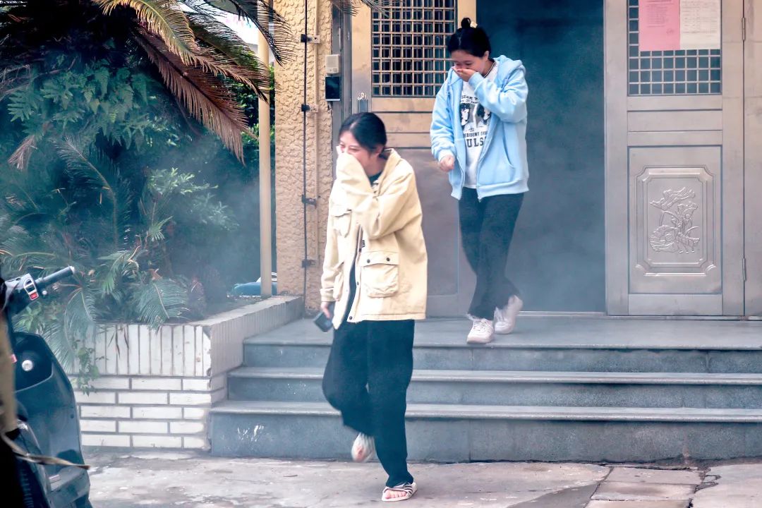 11月18日中午的12點(diǎn)30分,隨著警鈴響起,同學(xué)們按照疏散演練前老師普及的消防知識(shí),指引下從指定的疏散路線快速有序撤離至安全場(chǎng)地。學(xué)生們從各自的安全疏散通道緊急撤離到操場(chǎng)后,各班委清點(diǎn)人數(shù),以防有學(xué)生滯留、被困“火場(chǎng)”。