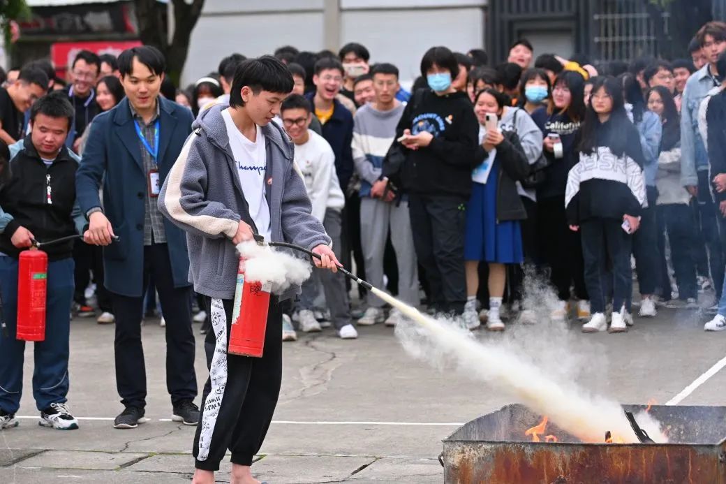 活動(dòng)現(xiàn)場(chǎng),鄭佳偉和張德華老師認(rèn)真指導(dǎo)師生們?nèi)绾握_使用滅火器,并親自為信息學(xué)子演示滅火器的使用并邀請(qǐng)學(xué)生們上場(chǎng)實(shí)際操作。