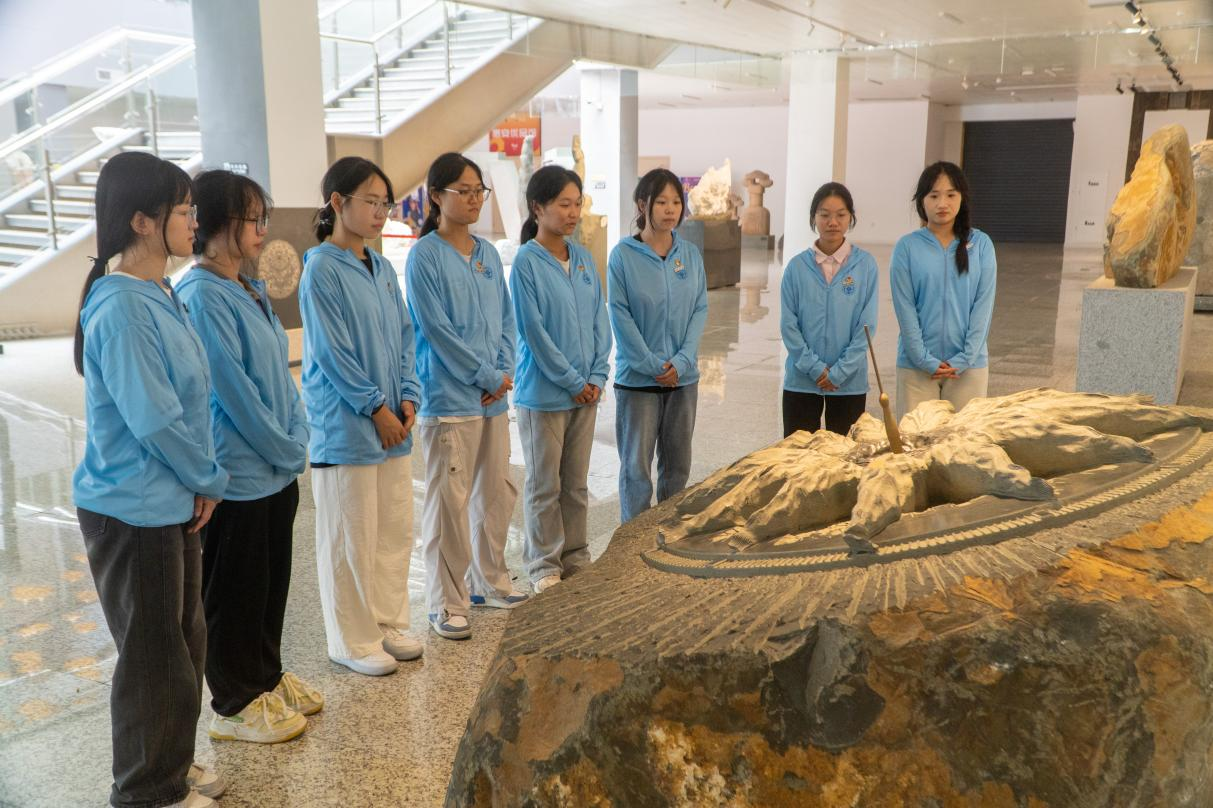 離開工作室,隊(duì)伍前往 “世界石雕之都” 展示中心與雕藝博物館。展示中心以石材為載體,展現(xiàn)山海特色與千年雕藝精髓;博物館內(nèi)千余件展品,串聯(lián)起從傳統(tǒng)影雕到現(xiàn)代抽象石雕的技藝演變歷程。成員們在參觀中,見證傳統(tǒng)紋樣與當(dāng)代設(shè)計(jì)的融合,感受古老工具與現(xiàn)代機(jī)械在石雕創(chuàng)作中的協(xié)作,深刻理解文化傳承與創(chuàng)新的內(nèi)在邏輯,認(rèn)識到傳統(tǒng)匠心技藝對鄉(xiāng)村文化振興的重要意義。