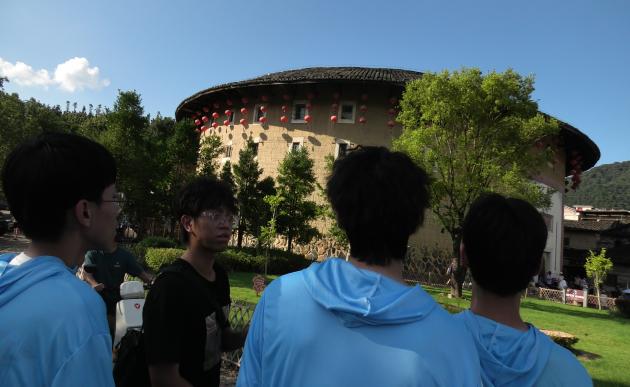 移步深入,土樓獨(dú)特的建筑布局令人嘆為觀止。那堅(jiān)實(shí)高聳的圓形或方形外墻,不僅是抵御外敵的屏障,更是家族凝聚的象征;內(nèi)部層疊環(huán)繞、秩序井然的 “樓中樓” 結(jié)構(gòu),宛如一座立體的村落,展現(xiàn)了先民們非凡的空間規(guī)劃智慧與和諧共生的理念。仰望這歷經(jīng)風(fēng)雨依然巍然屹立的宏偉建筑,其嚴(yán)謹(jǐn)?shù)臉?gòu)造、精巧的細(xì)節(jié)以及所蘊(yùn)含的深厚文化內(nèi)涵,無不彰顯著前代工匠追求極致、精益求精的偉大工匠精神,這份跨越時(shí)空的堅(jiān)守,讓成員們深切感受到傳統(tǒng)文化中 “守正創(chuàng)新” 的力量,也更加堅(jiān)定了用專業(yè)技能保護(hù)文化遺產(chǎn)的決心。