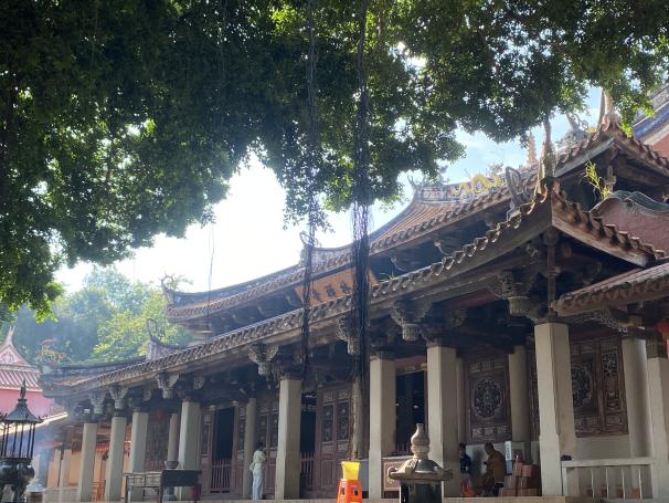 “E芯人·閩藝遺韻”中華文脈傳承團(tuán)步履不停,奔赴泉州少林寺,在歷史遺存中深掘閩地文脈。古寺內(nèi),榕蔭如蓋,紅墻黛瓦間,傳承團(tuán)駐足凝視斗拱上的精美雕飾,指尖輕觸歷經(jīng)歲月摩挲的木柱,細(xì)聽(tīng)檐角銅鈴隨風(fēng)搖曳的韻律,于一榫一卯中感知閩南傳統(tǒng)營(yíng)造技藝的精湛;移步至少林牌坊前,傳承團(tuán)肅立仰望“少林勝蹟”匾額,撫摸石碑上的斑駁刻痕,當(dāng)年輕的眼眸望見(jiàn)歷史的褶皺,當(dāng)溫?zé)岬闹讣庥|碰歲月的肌理,中華文脈傳承不再是遙遠(yuǎn)的符號(hào),而是青春輩接過(guò)的使命火炬。