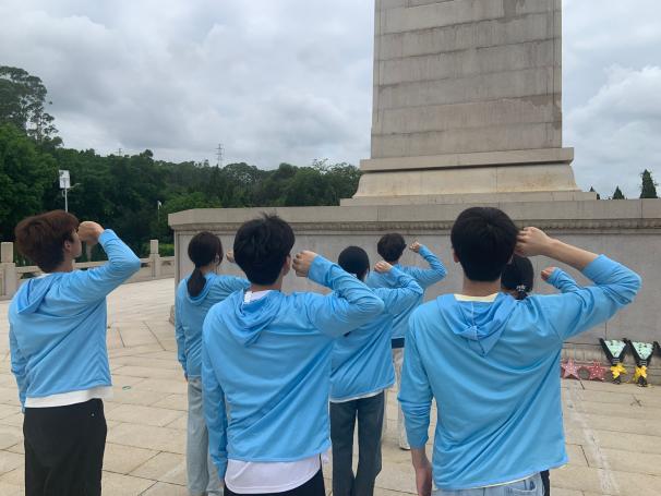 在蒼松翠柏掩映的泉州市革命烈士陵園,實(shí)踐團(tuán)成員手持白菊,肅立于巍峨的紀(jì)念碑前。晨光中,花崗巖碑體上鐫刻的鎏金大字熠熠生輝,成員們俯身輕拭碑座,讓那些承載著光榮與犧牲的名字重現(xiàn)光芒。在"赤膽忠心"主題浮雕墻前,帶隊(duì)老師講述著1949年解放泉州戰(zhàn)役中,27名年輕戰(zhàn)士為掩護(hù)群眾轉(zhuǎn)移而壯烈犧牲的事跡。微風(fēng)拂過,潔白的花瓣輕輕飄落在長青灌木叢間,成員們面向紀(jì)念碑深深鞠躬,用無聲的致敬完成這場跨越時(shí)空的精神對話。