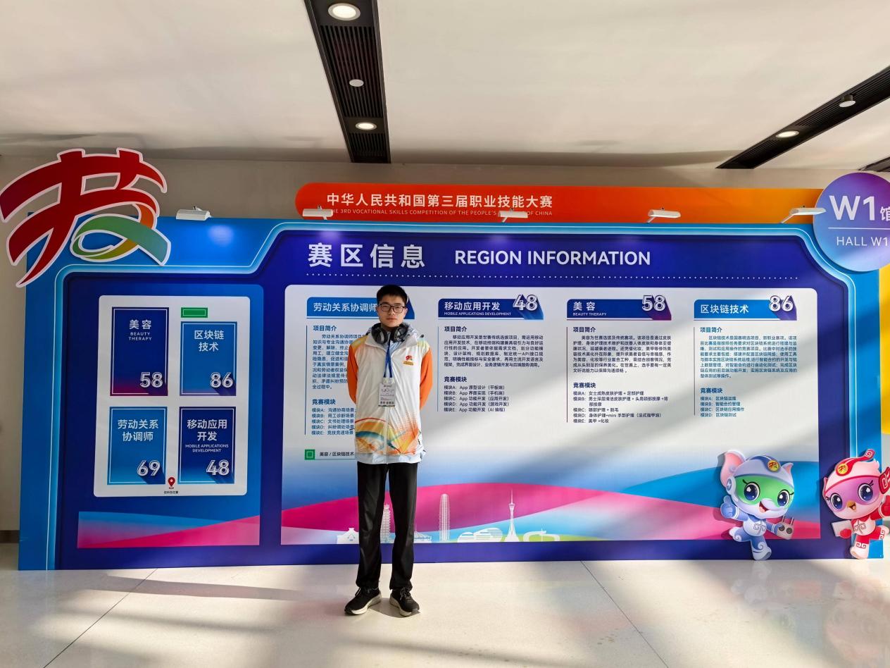 近日,備受矚目的中華人民共和國第三屆職業(yè)技能大賽在河南鄭州圓滿落幕。我院 23 計算機網(wǎng)絡(luò)技術(shù) 3 班學(xué)生李志欽憑借過硬的專業(yè)素養(yǎng)、沉穩(wěn)的賽場發(fā)揮,在移動應(yīng)用開發(fā)(世賽選拔)項目中脫穎而出,斬獲優(yōu)勝獎(第五名),并成功入選第 48 屆世界技能大賽中國集訓(xùn)隊,為學(xué)院再添榮譽。