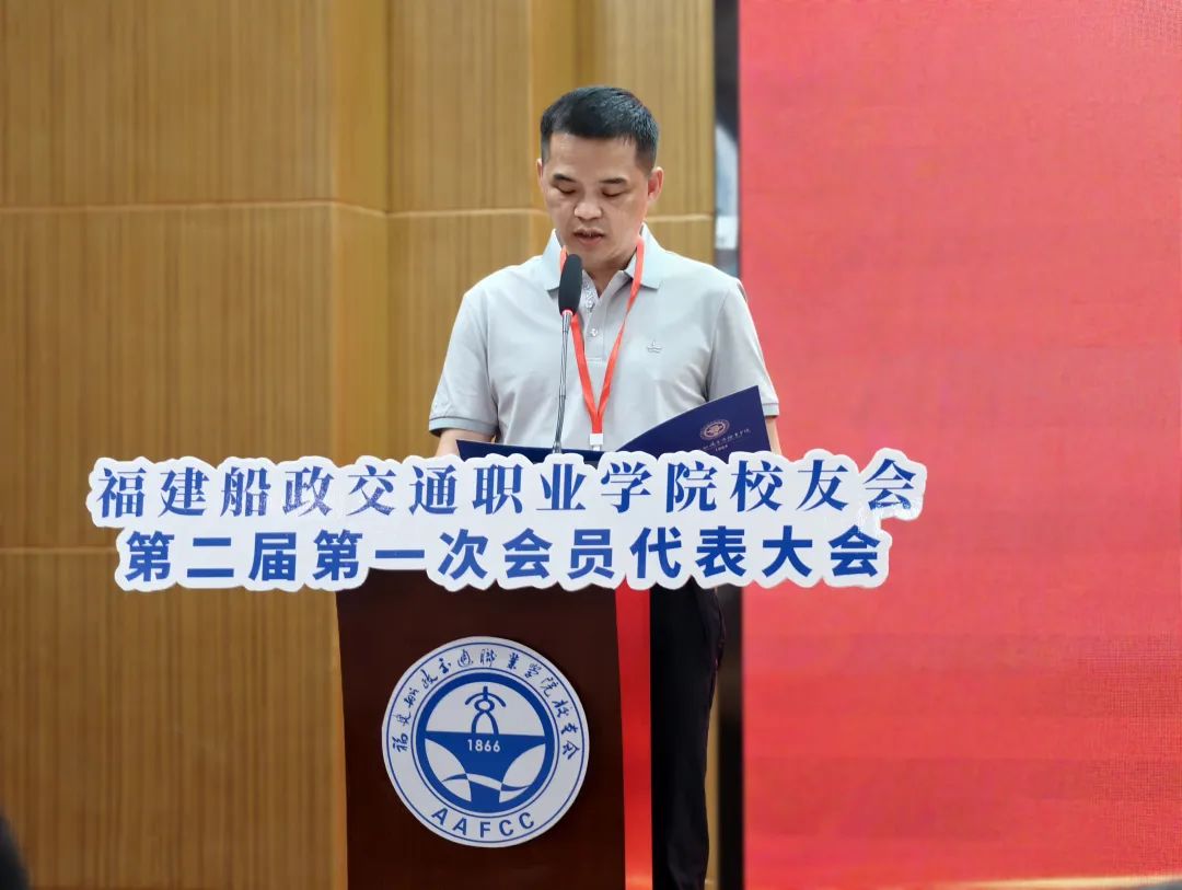 福建船政交通職業(yè)學(xué)院第一屆校友會副會長、福建省船政文化交流協(xié)會會長林志升宣讀了主管單位關(guān)于同意換屆的批復(fù)文件;第二屆第一次會員代表大會籌備組組長俞素平向大會報告籌備工作情況。