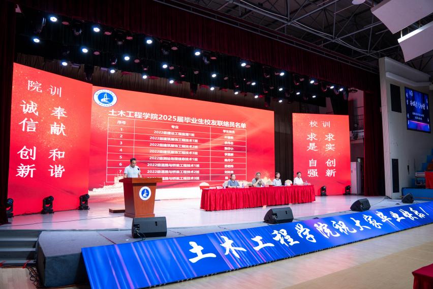 2025年6月10日,土木工程學院在福道園文體中心舉行2025屆畢業(yè)生畢業(yè)典禮。作為典禮重要環(huán)節(jié),土木工程專業(yè)委員會正式聘任22名2025屆畢業(yè)生擔任校友聯(lián)絡員,建立校友與母校的常態(tài)化聯(lián)絡機制。