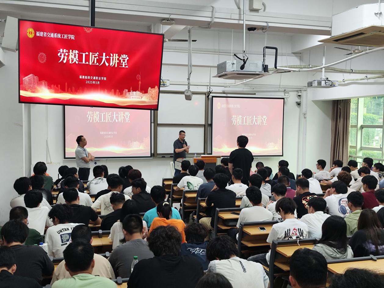 為響應(yīng)2025年全國職業(yè)教育活動(dòng)周“一技在手 一生無憂”的號(hào)召,弘揚(yáng)勞模精神與工匠文化,校友會(huì)土木工程專業(yè)委員會(huì)積極搭建校友與母校聯(lián)動(dòng)平臺(tái),近日特邀2006屆道路與橋梁工程技術(shù)專業(yè)優(yōu)秀校友、福建省勞動(dòng)模范、寧德交投置業(yè)公司成本合約部經(jīng)理賴盛君返校,在創(chuàng)新樓102教室開展“勞模工匠進(jìn)校園,匠心傳承育未來”主題講座。本次活動(dòng)作為職教周特色活動(dòng)之一,吸引了140余名師生參與,現(xiàn)場反響熱烈。