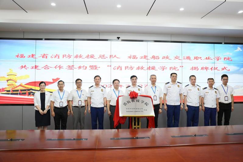 7月27日上午,我院與福建省消防救援總隊(duì)共建合作簽約暨“消防救援學(xué)院”揭牌儀式在學(xué)院第一會議室舉行。福建省消防救援總隊(duì)黨委書記、政治委員賴世雄,總隊(duì)黨委委員、副總隊(duì)長陳立民,總隊(duì)黨委委員、政治部主任陳培志,福建船政交通職業(yè)學(xué)院黨委書記張海明,黨委副書記、院長陳錦輝,黨委副書記陳宜大,黨委委員、副院長張祖柱出席儀式。學(xué)院黨委委員、副院長陳艷紅主持儀式,福建消防救援總隊(duì)政治部各處室干部和訓(xùn)保支隊(duì)指戰(zhàn)員代表,學(xué)院相關(guān)職能部門、二級學(xué)院相關(guān)負(fù)責(zé)人及安全與環(huán)境學(xué)院教師代表參加。