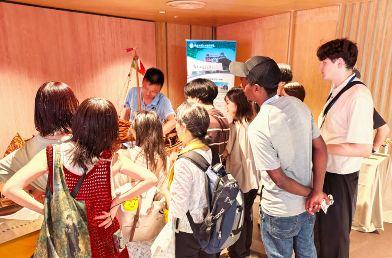 展位現(xiàn)場(chǎng),精巧的福船模型、精湛的傳統(tǒng)技藝演示與豐富的圖文影像資料相得益彰,生動(dòng)還原了水密隔艙這一古老造船智慧的奧秘,迅速吸引各國(guó)游客、參展方代表及媒體駐足關(guān)注。我院教師熱情接待每一位參觀者,細(xì)致講解福船的歷史淵源與文化價(jià)值,還通過(guò)互動(dòng)演示工藝環(huán)節(jié),讓國(guó)際觀眾沉浸式感受中華優(yōu)秀非物質(zhì)文化遺產(chǎn)的獨(dú)特風(fēng)采。